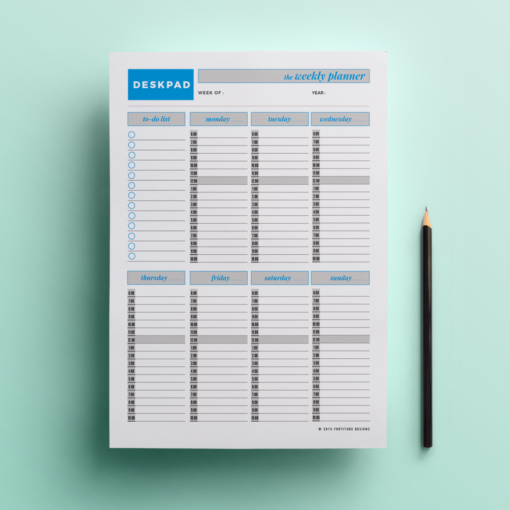 This handy planner provides a hourly schedule for the complete week (Monday to Sunday) with a to-do list section.